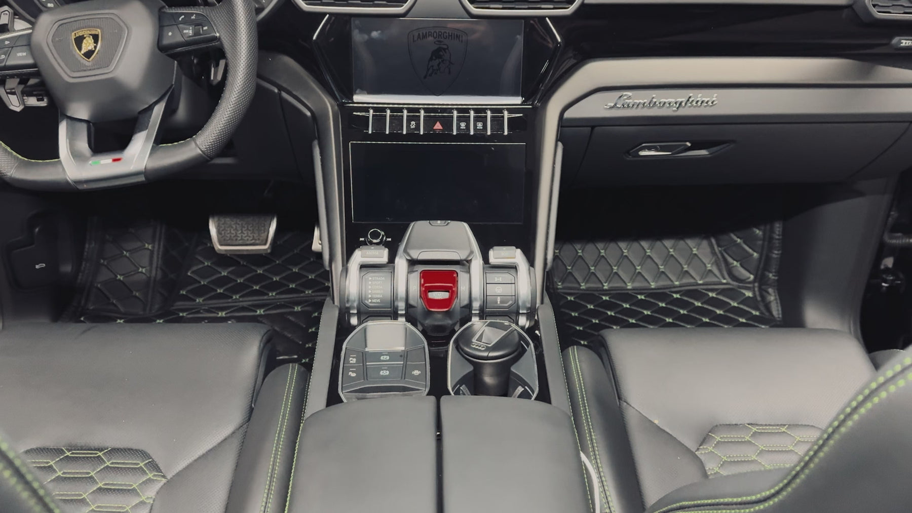 Interior of a luxury car with leather seats and a detailed dashboard.